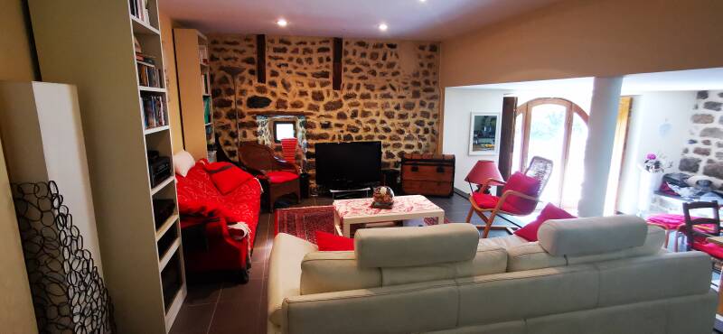 Belle maison bourgeoise 300m² en pierres de pays entièrement restaurée avec tout le confort moderne en bordure de rivière et petites cascades à proximité, source naturelle et four à pain. Terrain entièrement clos sur 2 000m2 posé dans un domaine forestier de 15 ha en pleine nature à 5 min du village de Marcols-les-Eaux et ses petits commerces.